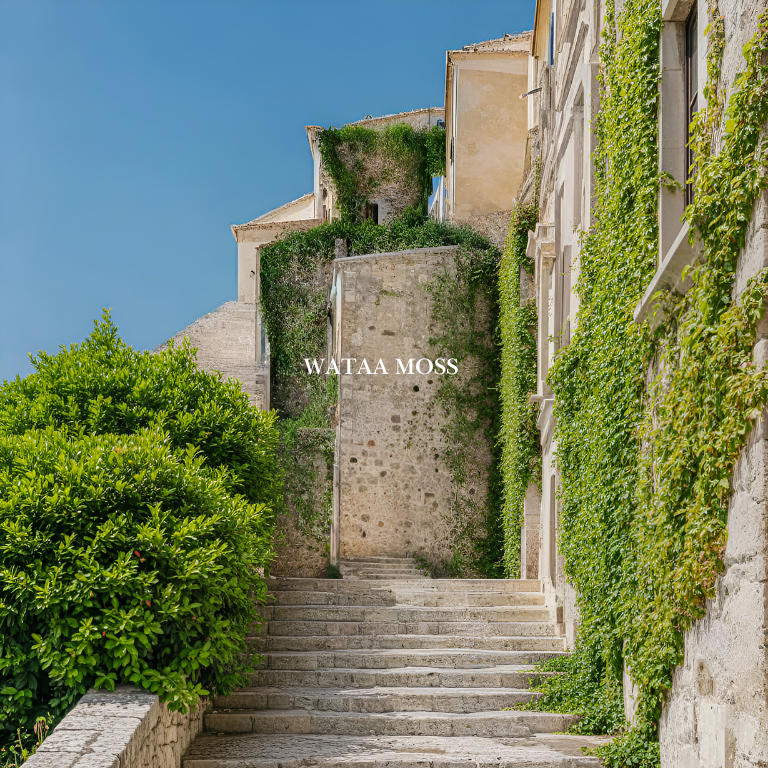 Where time and nature meet in quiet harmony. Ivy and stone intertwine to reveal the subtle outline of WATAA, a living mark shaped by patience and growth. A moment suspended between architecture and earth — soft, green, and eternal.