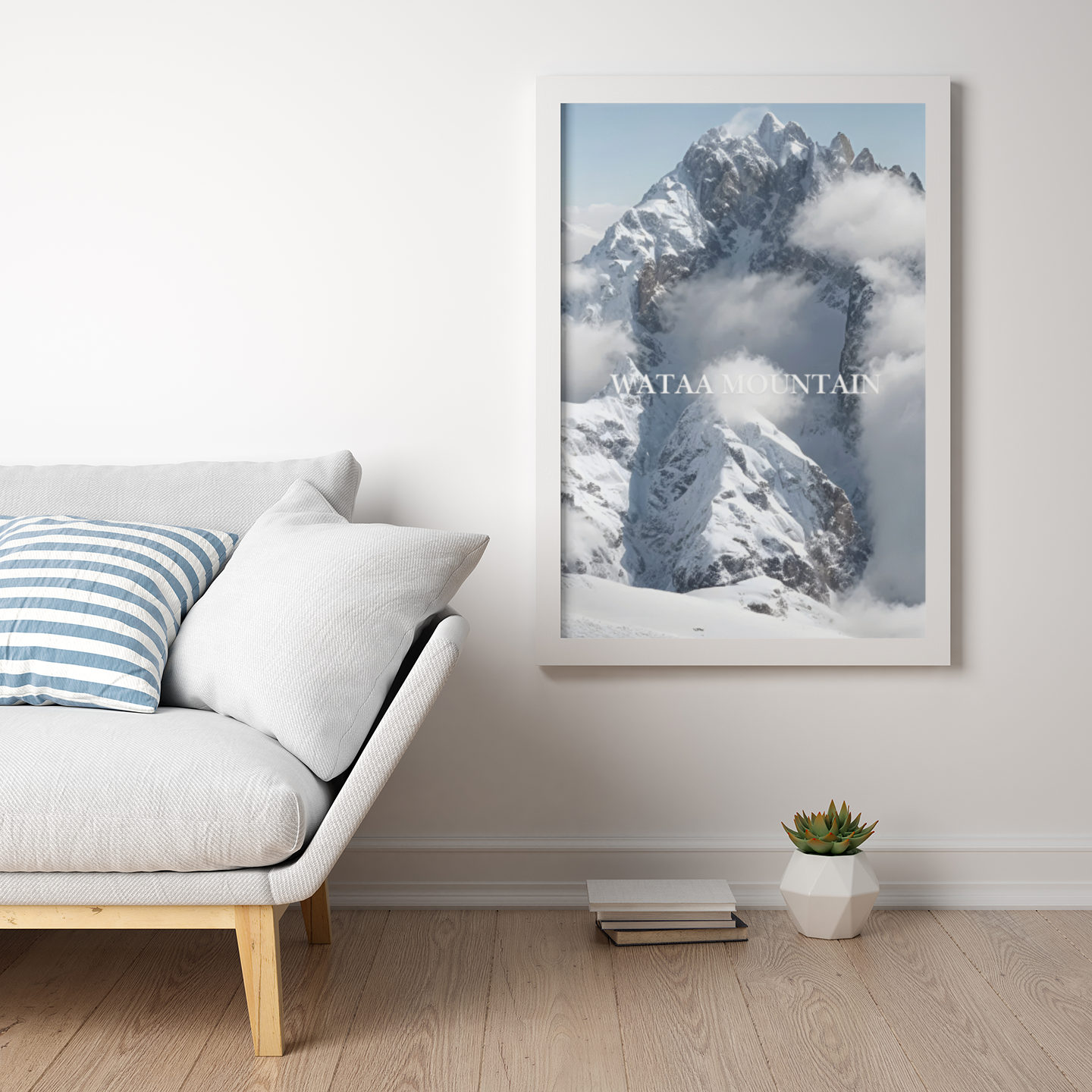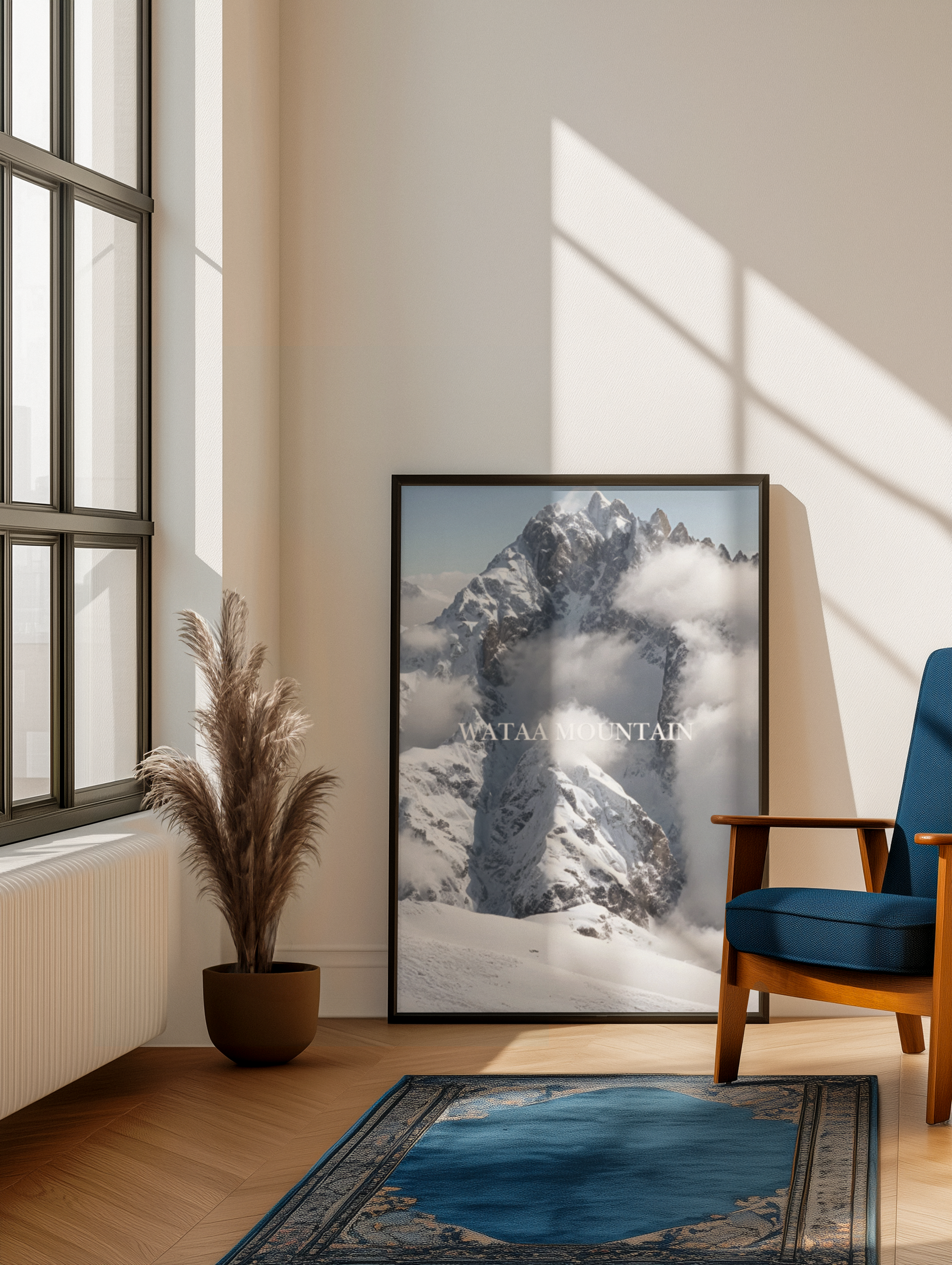 Where strength meets stillness. The snow and clouds carve the silent form of WATAA into the peaks — a symbol of endurance, purity, and quiet power. A natural monument shaped by time, standing eternal above the world.